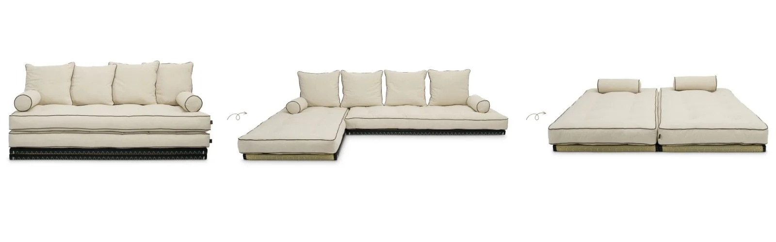 In its basic form, it serves as a sofa, ideal for everyday relaxation.